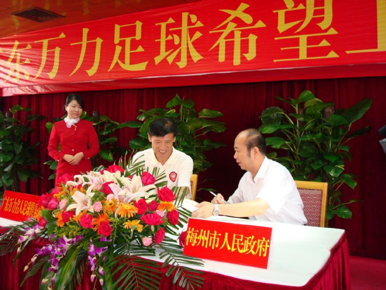 俱乐部理事长董良田与梅州人民政府郑少伟签订万力希望工程协议